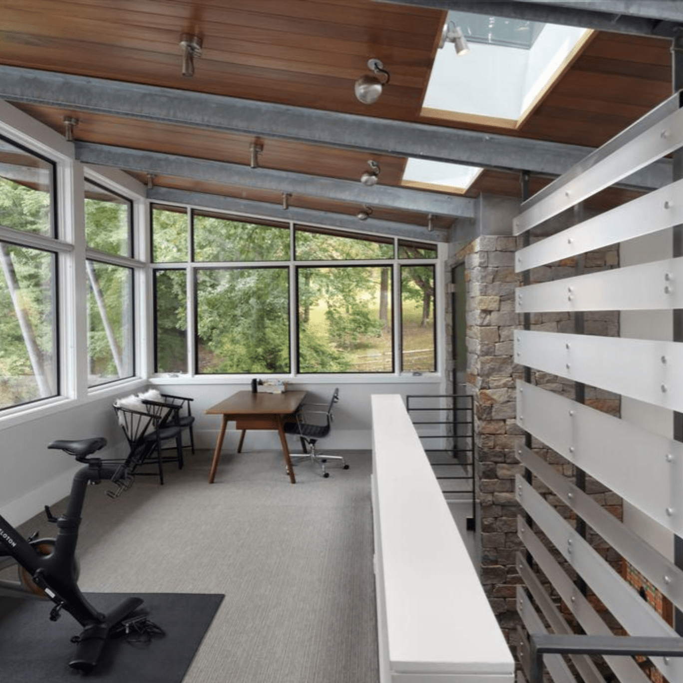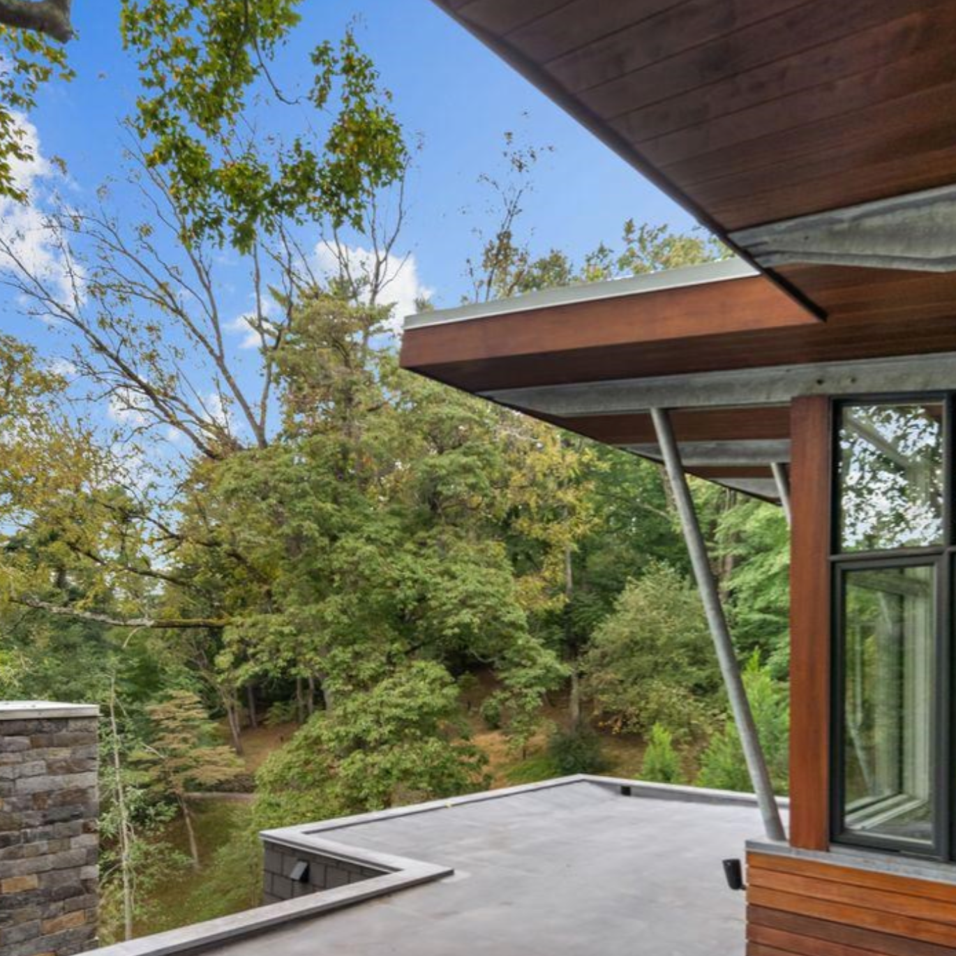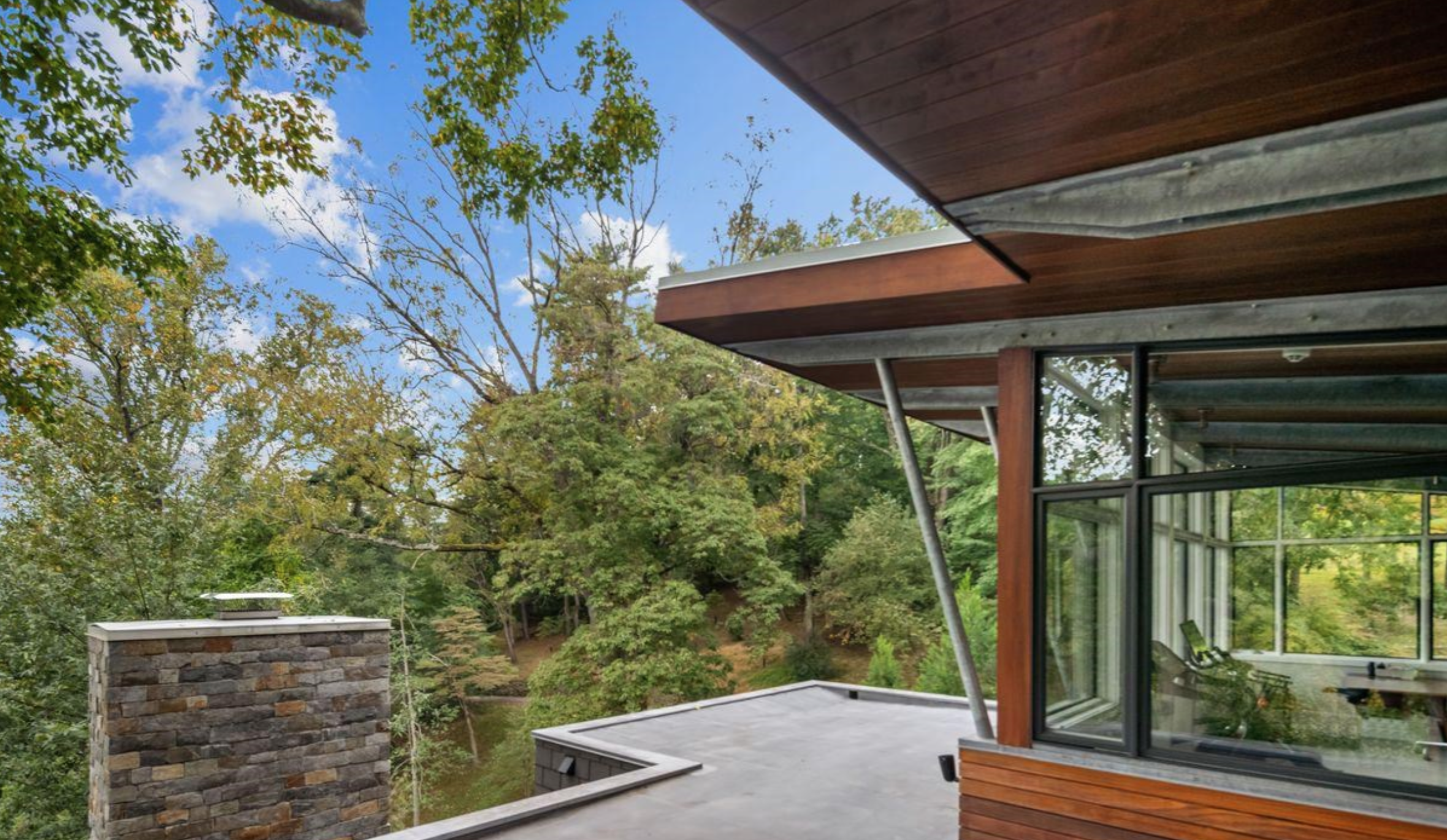 The beauty of this modern masterpiece is its fabulous location nestled high above the Wissahickon Valley within Fairmount Park and the perfect harmony of the building materials: stone, zinc, slate and Sapele wood.